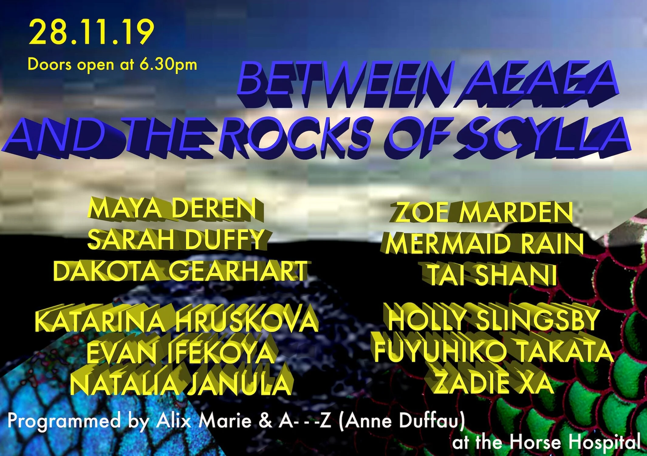 Alix Marie & A---Z (Anne Duffau) present a night of sirens sounding, between Aeaea and the rocks of Scylla where sea creatures emerge at dawn to take you on a journey you might never come back from...