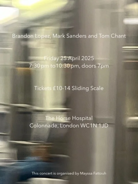 A night of musical improvisation from performers Brandon Lopez, Mark Sanders, and Tom Chant.