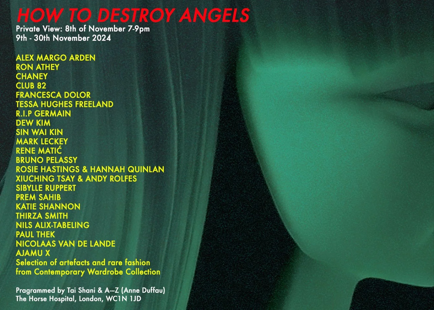 The Horse Hospital, one of London’s most iconic and independent art venues, is proud to host How to Destroy Angels programmed by Tai Shani, artist and Horse Hospital programmer 2007-2017, and creative producer A—Z (Anne Duffau).