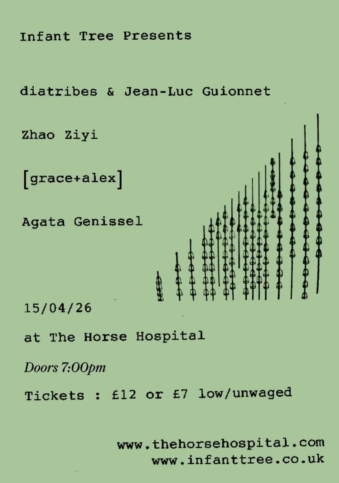 Infant Tree Presents: diatribes & Jean-Luc Guionnet | Zhao Ziyi | [grace+alex] | Agata Genissel