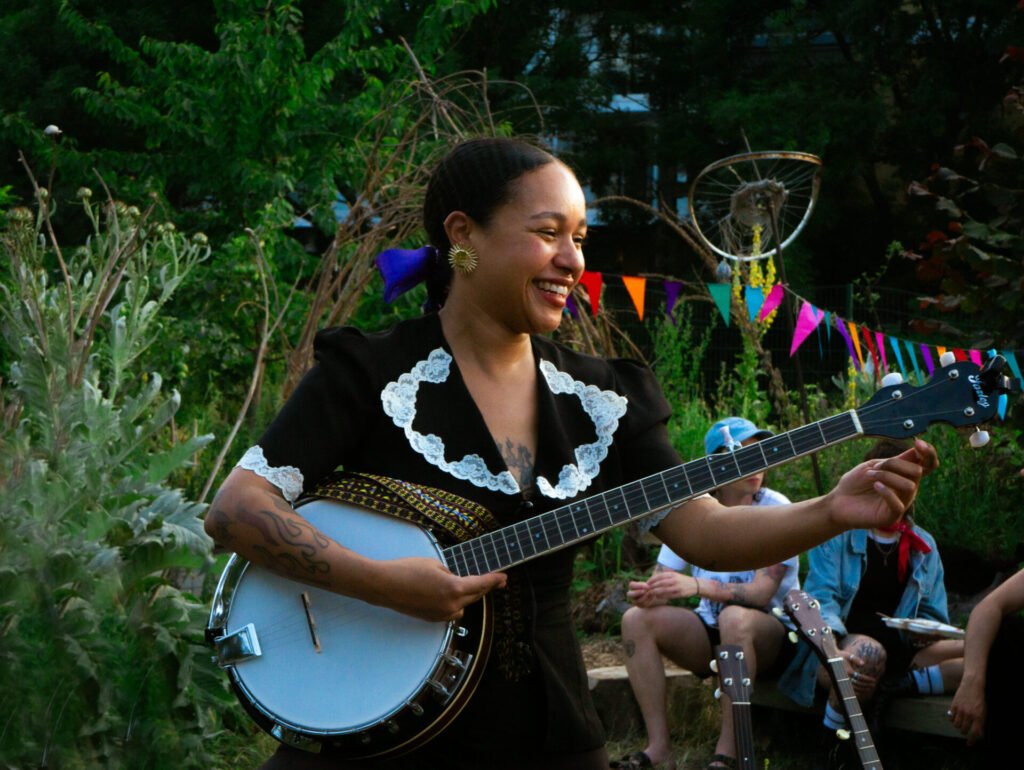 Bianca Wilson/Island Girl is a multi-instrumentalist and singer from South of the River. Her practice focuses mainly on the banjo: using it in her quest into music and sound as a celebration of diasporic experience, traversing different epochs of traditional musics in the process.