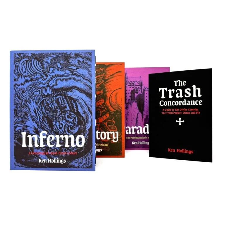 In the third and final volume of his personal reflections on Trash Aesthetics, Ken Hollings tells the story of three kings who squandered everything they had in a grandiose spectacle of waste. King Ludwig II of Bavaria, ‘King of Rock ‘n’ Roll’ Elvis Presley and Michael Jackson, the ‘King of Pop,’ all shared the same doomed innocence. Their lives and early deaths were connected through individual displays of unfettered extravagance that brought them to the very edge of ruin. Each of them lived out their personal ideals of beauty and pleasure – even after the money was gone. In his reworking of Dante Alighieri’s Paradiso, Hollings presents Heaven as a place of rebellious but tragic self-indulgence.