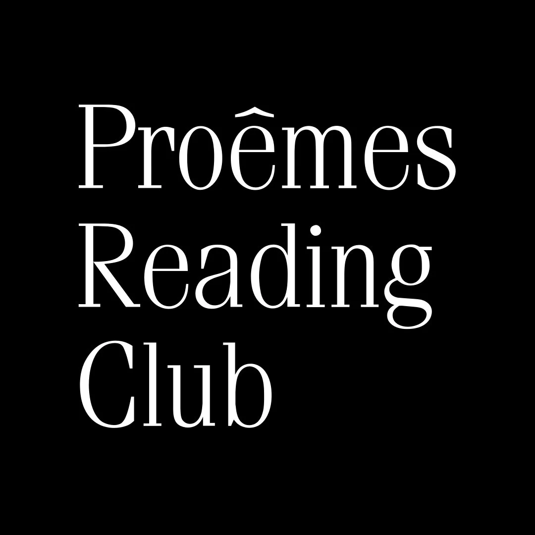 [ID: white serif font text against a black backdrop. Reads: ‘Proemes Reading Club’]